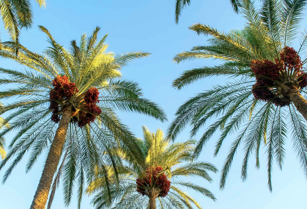 OctoberPruning offshoots, planting them, and relocating mature trees from one place to another. Perform the process of debudding by removing dry fronds and thorns from the new fronds. Clean the tree from any remaining date residues between the fronds and on the trunk. Apply a chemical fertilizer (Nitrophoska) to compensate the date palm for the nutrients lost during fruiting. Water the tree once a week, and every 3 days if the root zone is not wide enough, adjusting the frequency according to the size and age of the tree.